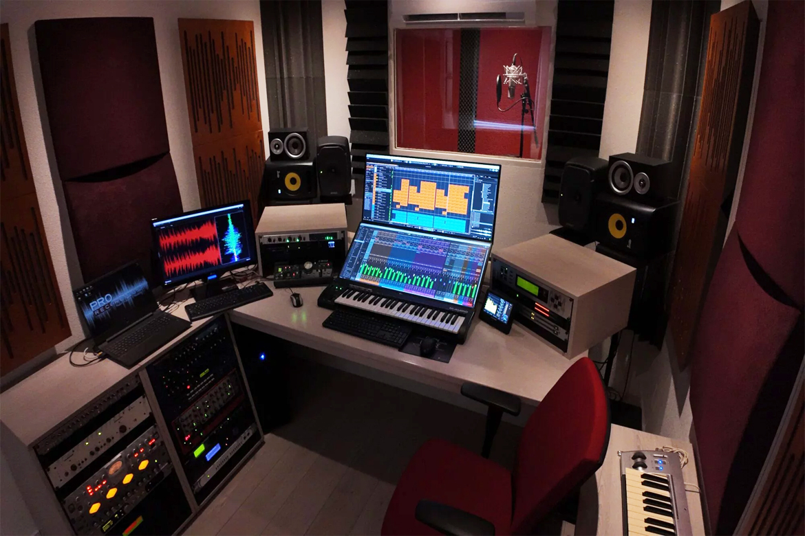 In de studio word gewerkt met de nieuwste Steinberg Cubase Pro versie voorzien van de meest populaire plugins met effecten.